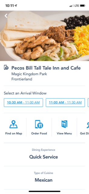 As of now, all QS meals have to be ordered from your mobile device. This limits the amount of traffic within the restaurant. You will open up the Disney App and select “order food”. You’ll then be prompted to select an arrival window time. After you decide on your food and submit your order, which can be done from anywhere, you will walk to the restaurant and tap the button “I’m here” when you are outside of the restaurant. When your order is ready, you will receive a text message with a Line number. You’ll walk inside and proceed to that number to get your food. You can then choose to sit down inside the restaurant.. or take your food elsewhere. Typically, we choose to eat outside if we can.. as that feels like the safest option right now when mask are removed. Our favorite QS restaurant is Pecos Bill! If you arrive early enough to grab an outside seat, you are guaranteed to have great views of the cavalcades!